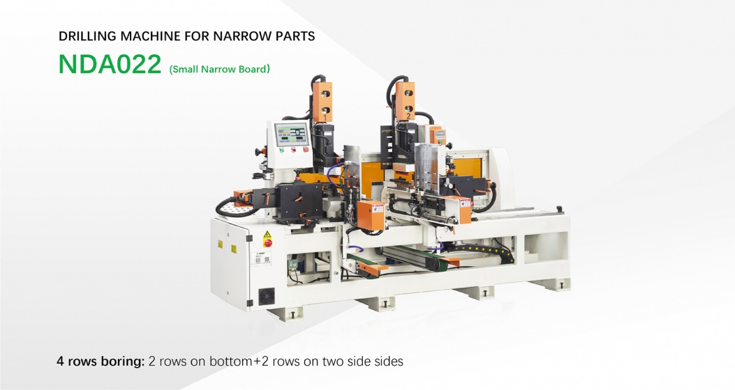 - NDA022, multi rows boring machine is special designed for boring work of small narrow board like drawer small furniture parts, feed in& out from front, this kind of return feed system plus simplified boring process make it possible to finish boring requirement in one process. Boring block could be customized as per your boring requirement.