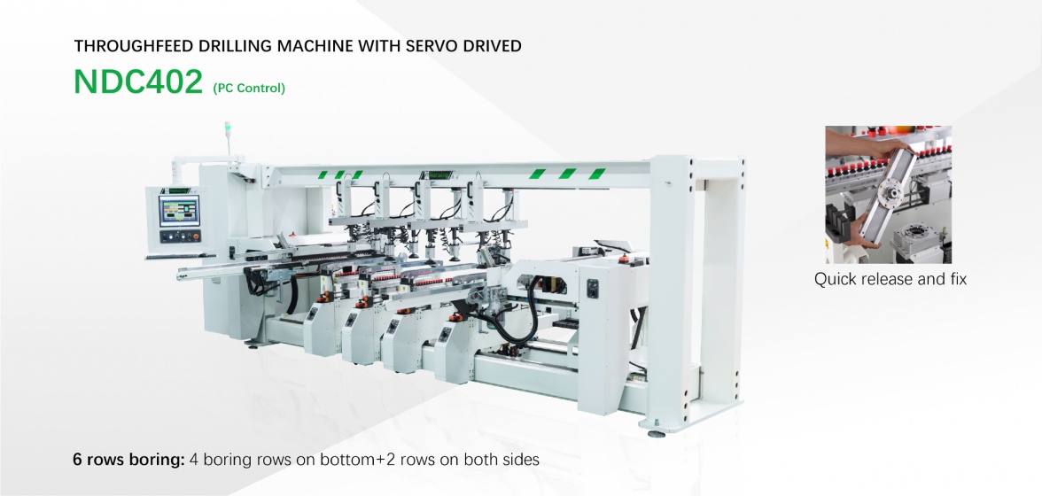 Throughfeed Drilling Machine with Servo Drived NDC402-PC Control