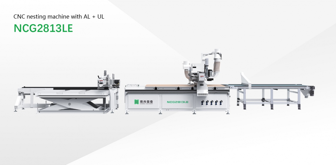 - NCG2813LE with 4 high-speed main spindles is able to meet various processing requirements like nesting, shaping, grooving, top side boring. Max. speed along X & Y direction up to 50m/min, auto feed-in and out table improve the efficiency, save labor. IPC control with window 7 operation system of high stability and ease of operation.