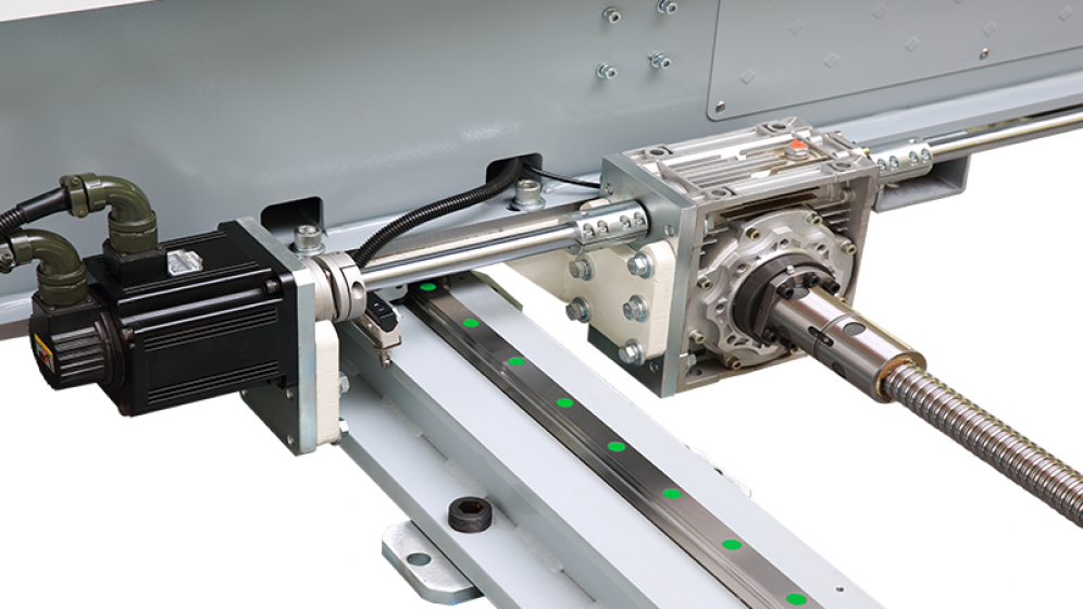 Width adjustment and positioning by 2 ball screw rods on two ends which were driven by precise servo motor guarantee the adjusting precision. Auto adjusting in between mechanism according to panel width;