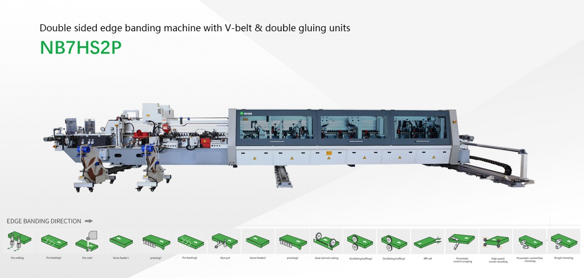 Panels evenly pressed by fiber reinforced V-belt to ensure smooth conveying, clean with no marks, resulting excellent edge banding quality
