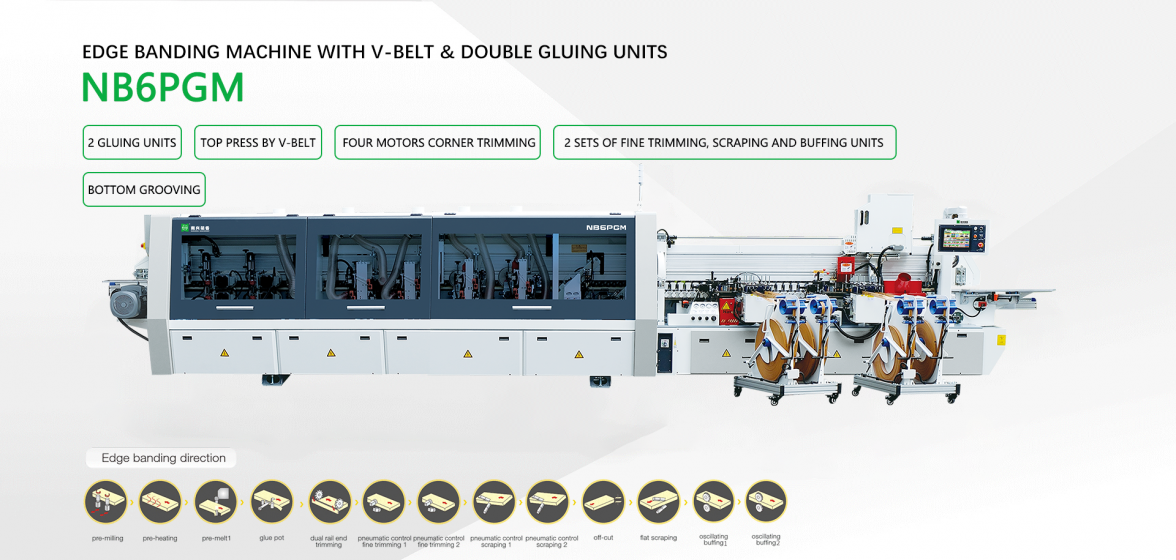 Edge Banding Machine with V-belt & Double Gluing Units NB6PGM