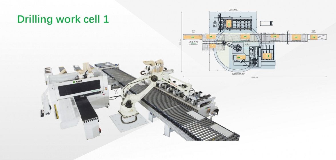 - With advantage of auto moving rail tables, NCG3312DA could perfectly link to this boring working cell especially for curve work pieces, One set of CNC 6-Sides Boring Center for normal standard workpieces. Two combinations cooperate well with one robot to finish boring in high efficiency.