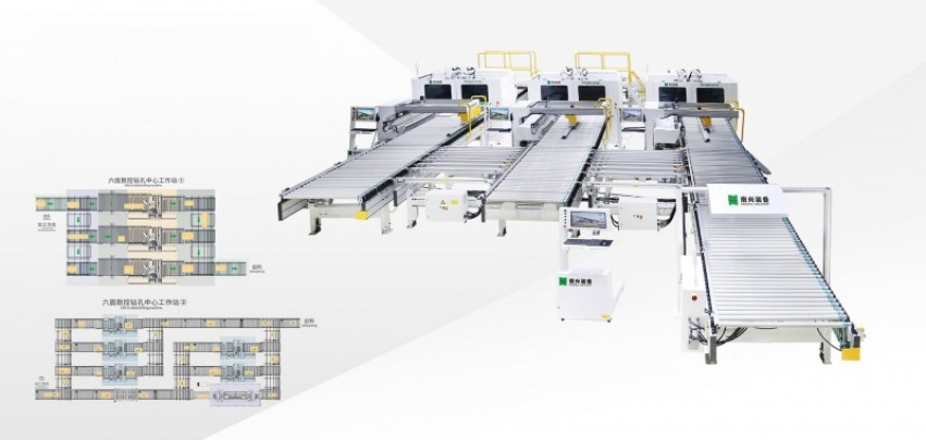 - CNC 6 Sides Drilling work cell specially designed for automation transformation and upgrading of medium-size furniture factories is not only individually used but also adjustable for combination with several units based on on-site conditions to satisfy higher production demands. This working cell with 1+N sets of CNC 6 Sides Boring Center of highly flexibility offers max. operation and repair convenience but with no need of special designed process route.